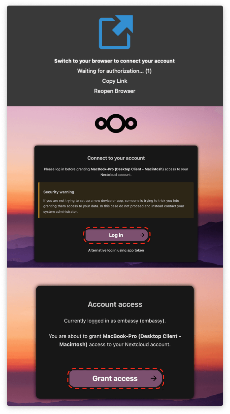 * Added pic and flow update * Nextcloud setup for mac and ios update * Update site/source/guides/service-guides/nextcloud/nextcloud-setup/nextcloud-ios.rst Co-authored-by: kn0wmad <39687477+kn0wmad@users.noreply.github.com> * Update site/source/guides/service-guides/nextcloud/nextcloud-setup/nextcloud-ios.rst Co-authored-by: kn0wmad <39687477+kn0wmad@users.noreply.github.com> * Update site/source/guides/service-guides/nextcloud/nextcloud-setup/nextcloud-ios.rst Co-authored-by: kn0wmad <39687477+kn0wmad@users.noreply.github.com> * Update site/source/guides/service-guides/nextcloud/nextcloud-setup/nextcloud-ios.rst Co-authored-by: kn0wmad <39687477+kn0wmad@users.noreply.github.com> * Update site/source/guides/service-guides/nextcloud/nextcloud-setup/nextcloud-mac.rst Co-authored-by: kn0wmad <39687477+kn0wmad@users.noreply.github.com> * Update site/source/guides/service-guides/nextcloud/nextcloud-setup/nextcloud-mac.rst Co-authored-by: kn0wmad <39687477+kn0wmad@users.noreply.github.com> * Update site/source/guides/service-guides/nextcloud/nextcloud-setup/nextcloud-mac.rst Co-authored-by: kn0wmad <39687477+kn0wmad@users.noreply.github.com> * Update site/source/guides/service-guides/nextcloud/nextcloud-setup/nextcloud-mac.rst Co-authored-by: kn0wmad <39687477+kn0wmad@users.noreply.github.com> * Update site/source/guides/service-guides/nextcloud/nextcloud-setup/nextcloud-mac.rst Co-authored-by: kn0wmad <39687477+kn0wmad@users.noreply.github.com> * Update site/source/guides/service-guides/nextcloud/nextcloud-setup/nextcloud-mac.rst * Update site/source/guides/service-guides/nextcloud/nextcloud-setup/nextcloud-ios.rst * Update site/source/guides/service-guides/nextcloud/nextcloud-setup/nextcloud-ios.rst * Update site/source/guides/service-guides/nextcloud/nextcloud-setup/nextcloud-ios.rst * Update site/source/guides/service-guides/nextcloud/nextcloud-setup/nextcloud-ios.rst * Update site/source/guides/service-guides/nextcloud/nextcloud-setup/nextcloud-mac.rst * Update site/source/guides/service-guides/nextcloud/nextcloud-setup/nextcloud-mac.rst * Update site/source/guides/service-guides/nextcloud/nextcloud-setup/nextcloud-mac.rst * Update site/source/guides/service-guides/nextcloud/nextcloud-setup/nextcloud-mac.rst * Better s/s and native mac server address can paste complete address * Corected path to server for calDav and carDav * Highlights with dashed lines across all images. * server path on mac changed to copy from nextcloud * Arrow fix * Hit me baby one more time --------- Co-authored-by: kn0wmad <39687477+kn0wmad@users.noreply.github.com>