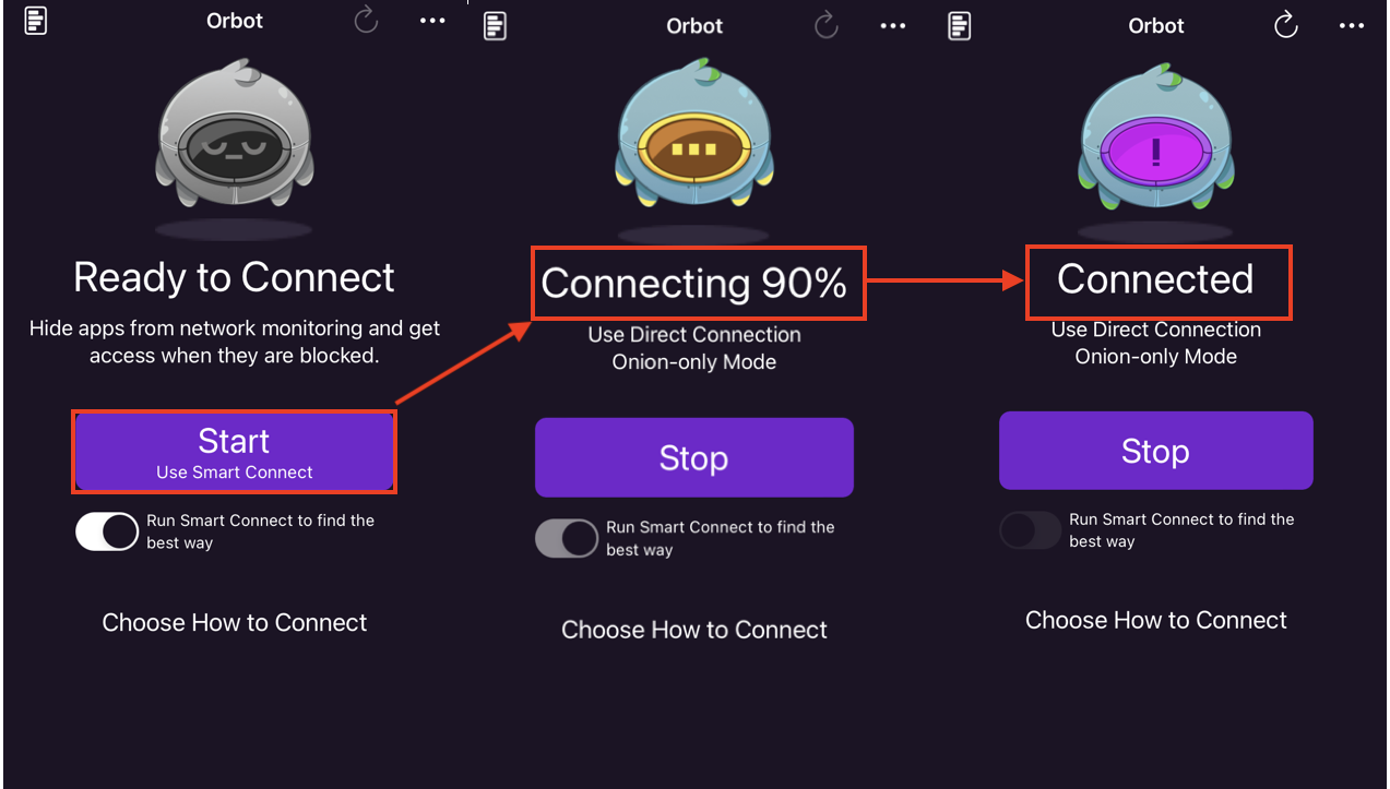 iOS Orbot connecting flow (